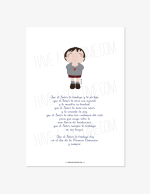 La delicadeza de la ilustración captura la pureza del niño en su día sagrado, mientras que la oración impresa añade un toque de espiritualidad significativa. La elección de la cita bíblica de Números 6:22, que pronuncia la bendición de Dios Padre, infunde la lámina con un mensaje profundo y consolador. Es más que una pieza decorativa; es un recordatorio tangible de la protección y gracia divina que rodea al niño en este importante paso de fe.
