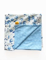 El anverso de la mantita bebé plumaje azul presenta un elegante diseño de plumas, mientras que el reverso tiene un patrón de puntitos a juego, creando un estilo armonioso y adaptable.