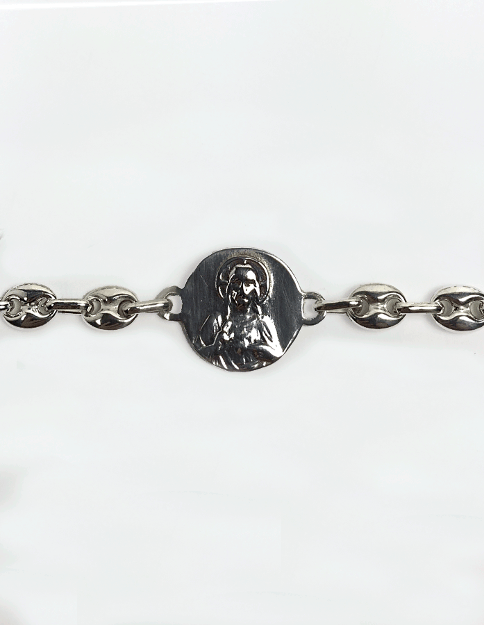 Pulsera medalla escapulario Virgen del Carmen de plata con calabrotes 16mm