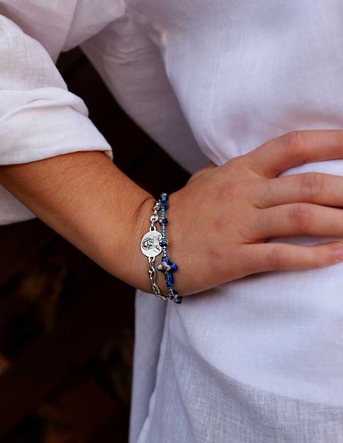 Pulsera de plata de calabrotes con escapulario medalla de la virgen del Carmen.