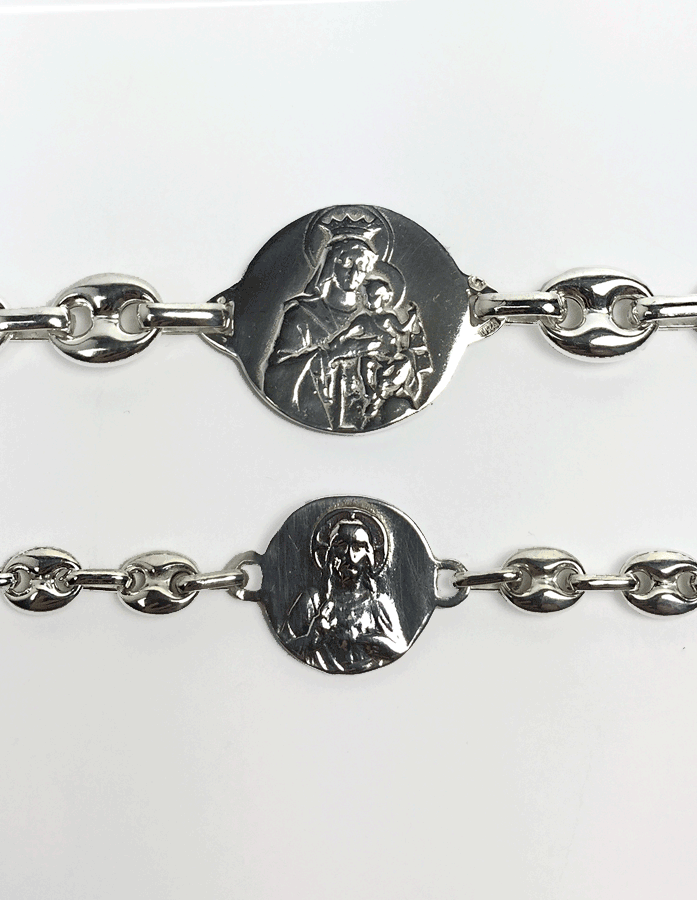 La Pulsera medalla Escapulario Virgen del Carmen es una pieza de joyería diseñada para llevar contigo un símbolo de fe y protección constante. Fabricada en plata de ley y montada con cadena de calabrotes de 23 mm, combina devoción, elegancia y un estilo atemporal que acompaña el día a día de quien la lleva.