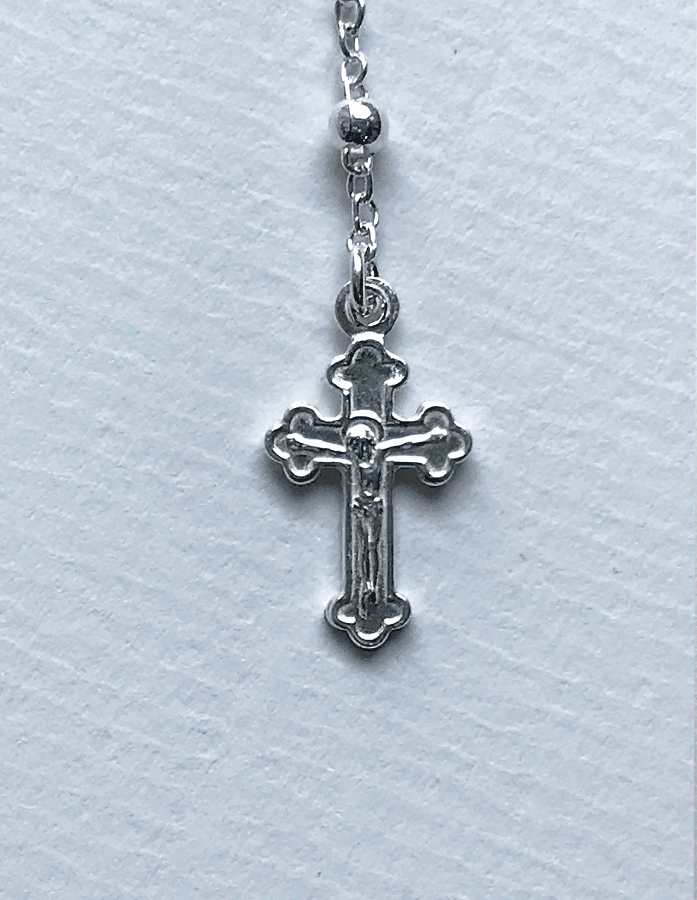 Ofrecemos una amplia variedad de diseños de rosarios de plata, pero este es uno de nuestros productos más populares. Si estás buscando un regalo significativo y único para una Primera Comunión, este rosario es la elección perfecta.
