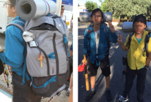 Al día siguiente bajo a por otra cruz para Santiago y la ato a su mochila. Le pido a Dios y a la virgen María que me los cuiden y me quedo más tranquila, mucho más tranquila sabiendo que así será. Y mientras la ato le cuento a Santiago que es para que tenga presente al Señor y para que les proteja. Le explico que no es un amuleto, sino un instrumento de gloria símbolo de nuestra fe que nos acompaña donde quiera que vayamos y en vacaciones también. Y al ver que pone cara de “es enorme” le digo que la cruz, el sufrimiento de Jesús crucificado, su sangre y su muerte han sido y son nuestra salvación. Y que no nos tiene que avergonzar sino que tenemos que estar orgullosos de ello. Ahora la cara es de «No seas pesada ya lo se…» Intentamos siempre aleccionarles pero en este caso sé que todo esto lo sabe.