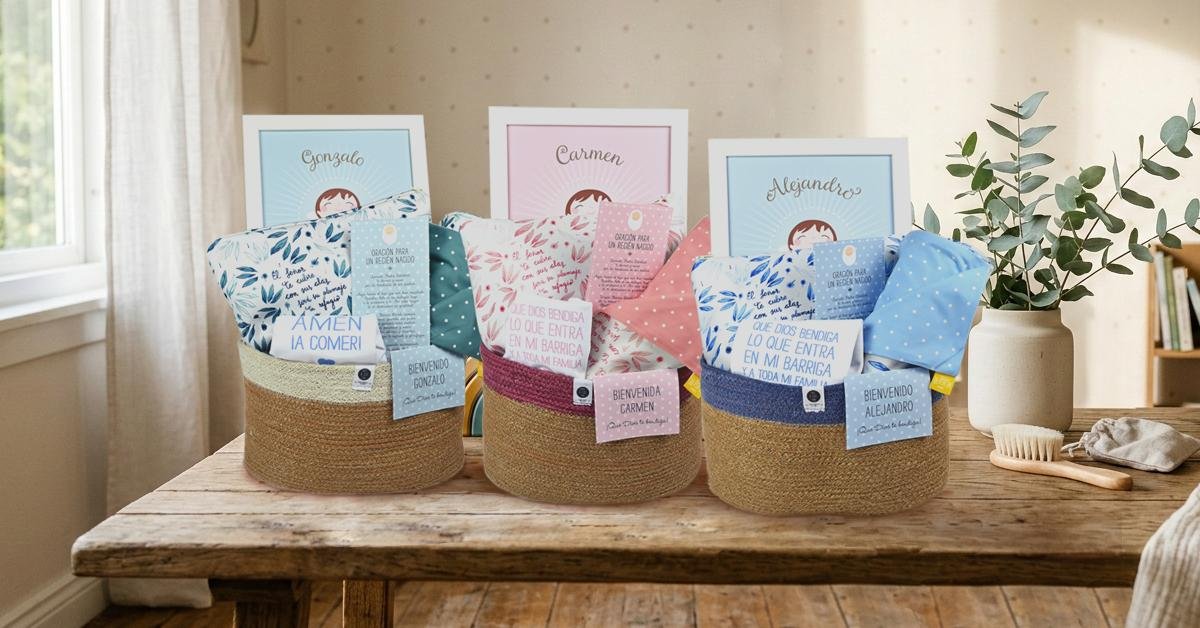 Cestas regalo bautizo bebe varios colores