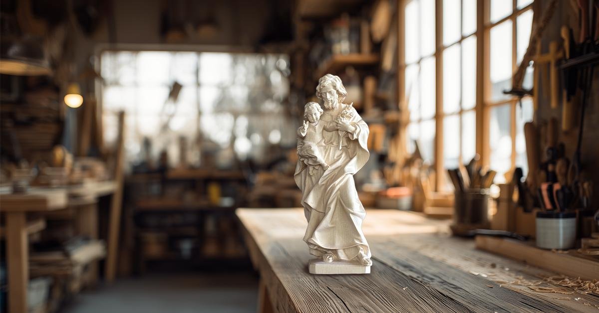 Figura San Jose con niño madera natural1