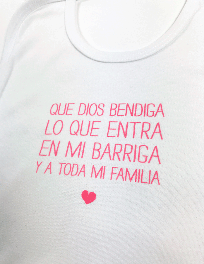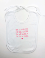 Babero Que Dios bendiga lo que entra en mi barriga. Rosa