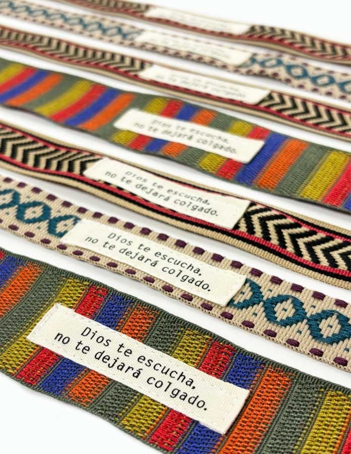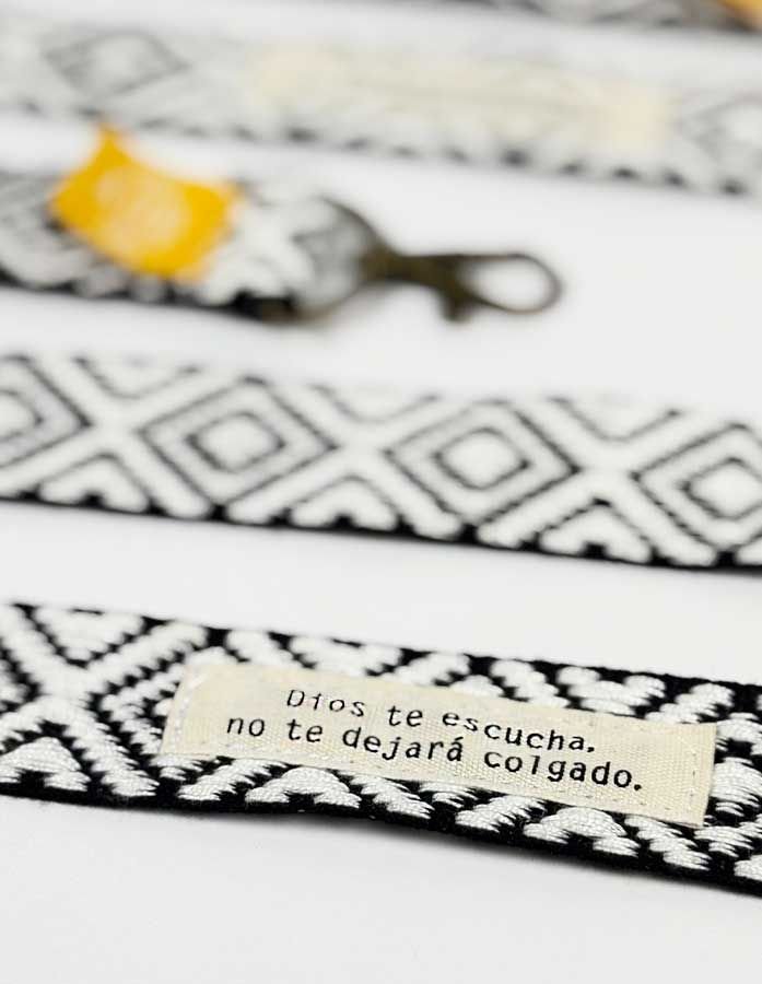 Su diseño estampado tiene cosida una frase : «Dios te escucha, no te dejará colgado». Tienes dos colores diferentes para elegir, un estampado salmón y otro negro.