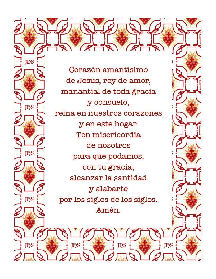 - «Dulce Sagrado Corazón de Jesús, protege mi hogar y mi familia.»