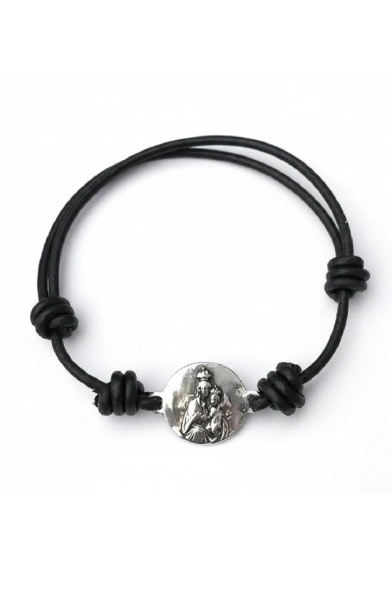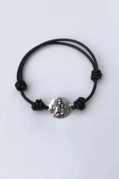 La pulsera de cuero con escapulario de la Virgen del Carmen de plata es una pieza de joyería religiosa elegante y significativa, perfecta para quienes desean llevar consigo un símbolo de fe y protección diaria. Confeccionada con cuero de alta calidad y una medalla escapulario en plata con la imagen de la Virgen del Carmen, esta pulsera combina tradición y estilo en un accesorio versátil que puedes lucir en cualquier ocasión.