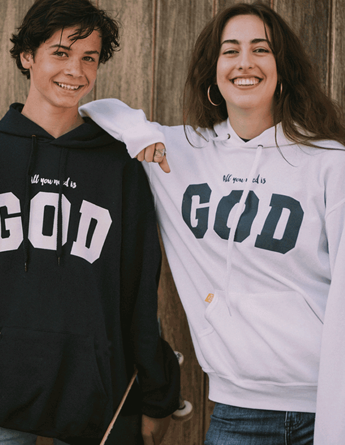 Sudadera con capucha All you need is God blanca